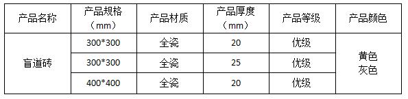 盲道磚顏色:橘色盲道磚,桔色盲道磚,深灰盲道磚,中黃盲道磚,乳白盲道磚(定制),綠色盲道磚(定制),材質為瓷磚質。